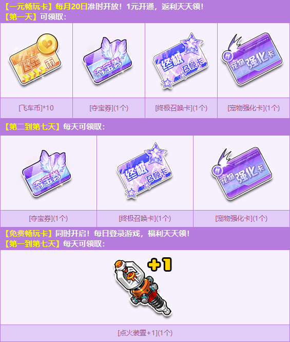 温馨提示:每月20日,一元畅玩卡准时开放,每月好礼享不停!