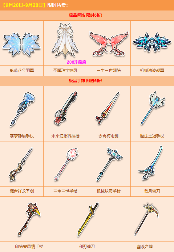 9月20日-9月28日,多款精美服饰/极品手饰/极品背饰限时折扣出售,快来抢购吧!