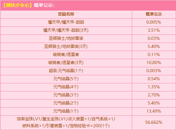 10月1日-10月31日,购买角色经验卡+200,赠送【元气石】,参与活动【钢铁少女心】有机会获得:极品S车【爆天甲】及其首发少女系列赛车皮肤【爆天甲-甜甜】、极品T1【圣辉骑士】、极品A车【地狱雷诺/破晓者/逐星者】、极品兑换道具【超级·元气结晶/元气结晶】或其他奖励!