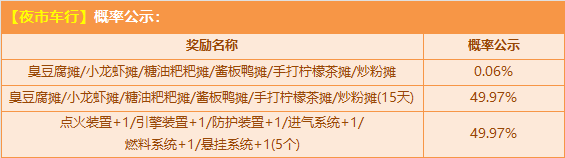 10月1日-11月30日,购买角色经验卡+200,附赠【夜市车行券】,参与【夜市车行】玩法有机会得:首发极品A车【臭豆腐摊/小龙虾摊/糖油粑粑摊/酱板鸭摊/手打柠檬茶摊/炒粉摊】或其他奖励之一!