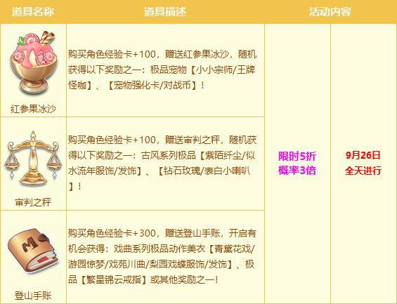 9月26日,三款人气宝箱全天5折优惠来袭,更有3倍概率助你赢取戏曲系列极品动作美衣【青黛花戏/游园惊梦/戏苑川曲/梨园戏蝶服饰/发饰】、极品宠物【小小宗师/王牌怪咖】、极品【紫陌纤尘/似水流年服饰/发饰】等其他极品奖励,惊喜不容错过!