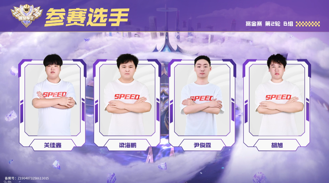 选车:关佳鑫-幻星、梁海鹏-裁决者、尹俊霖-御炎神兵、胡旭-霆光