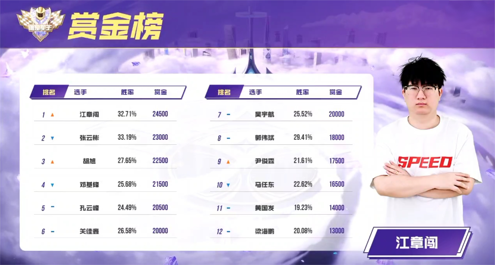 谁是车王S19赏金赛第七轮较量已顺利落幕,经过当日的激烈角逐,江章闯重返赏金榜首位。8月1日14:00,赏金赛第八轮的对决将如期开赛,敬请关注QQ飞车官方直播间,观看更加精彩的比赛哦!