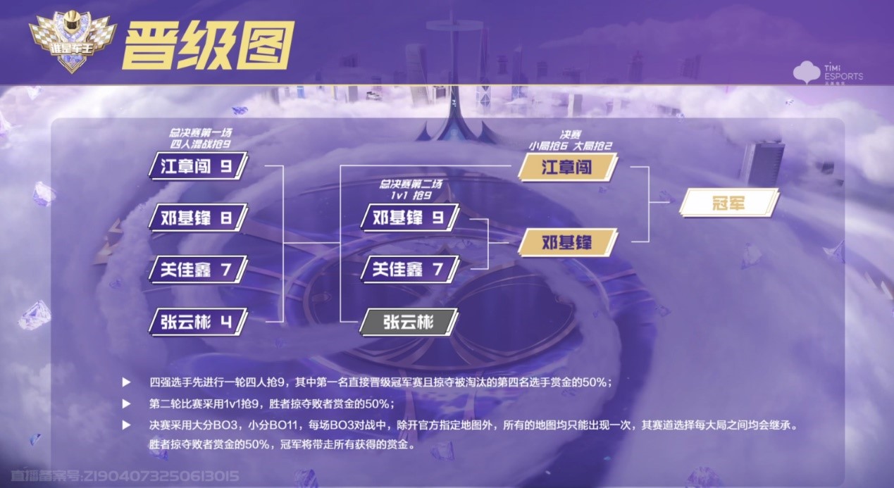 第十四张地图秋之物语,邓基锋领跑后采取放慢手段,被关佳鑫识破后,邓基锋无奈进行跟车,于终点前几个弯道处漂亮怼掉关佳鑫,收下赛点。第十五张地图灵蛇传说,邓基锋后追过程中出现撞墙失误,后续调整路线,成功走上蛇道,关佳鑫咬紧牙关,丝毫不敢松懈,最终关佳鑫扳回一分。第十六张地图66号公路,关佳鑫领跑占据优势,通过近道后,被邓基锋连带落后,邓基锋放平心态,释放氮气后冲刺过线,终结单挑赛。
