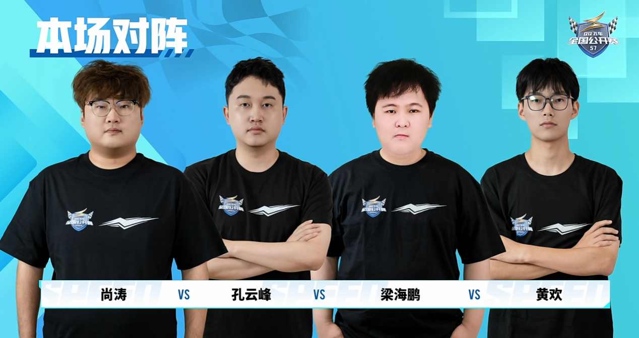 赛果:梁海鹏第一名、孔云峰第二名、黄欢第三名、尚涛第四名。